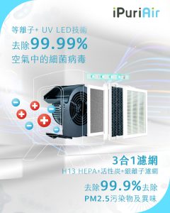 Meet iPuriAir, the smartest, most effective, user-friendly air purifier. Based on a decade of research and study, it intelligently and cost-effectively delivers full spectrum air purification, combining the best high-end HEPA and Carbon filters, Silver ion filter, Bi-Polar ionization, and germicidal ultraviolet technology.